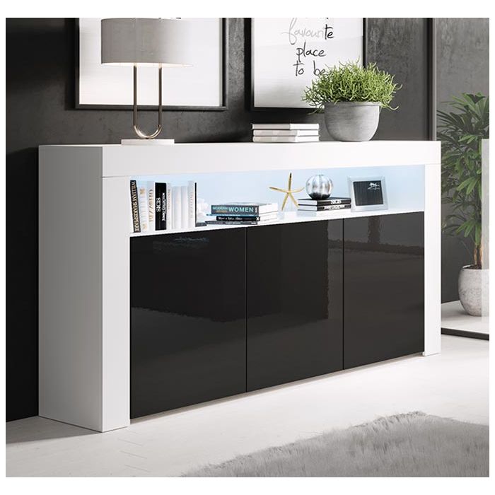 Aparador modelo Aker cor branca e preta brilhante