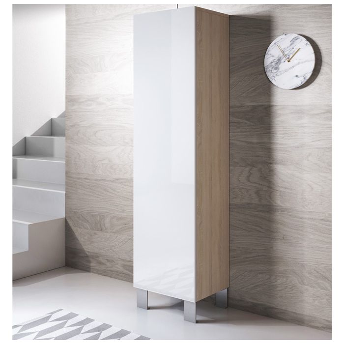 Armário modelo Luke V4 (40x177cm) cor sonoma e branca com pés de alumínio