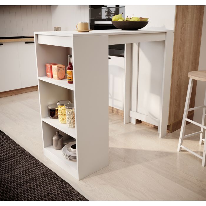 Apresentamos-te esta mesa alta que irá otimizar o teu espaço. As suas linhas simples e o seu acabamento contemporâneo ficam bem em qualquer interior. Conseguirás um espaço acolhedor para os teus pequenos-almoços e refeições ou um espaço informal para receber os teus amigos. Aproveita os três espaços que tem de um lado e ganha espaço extra na tua casa.