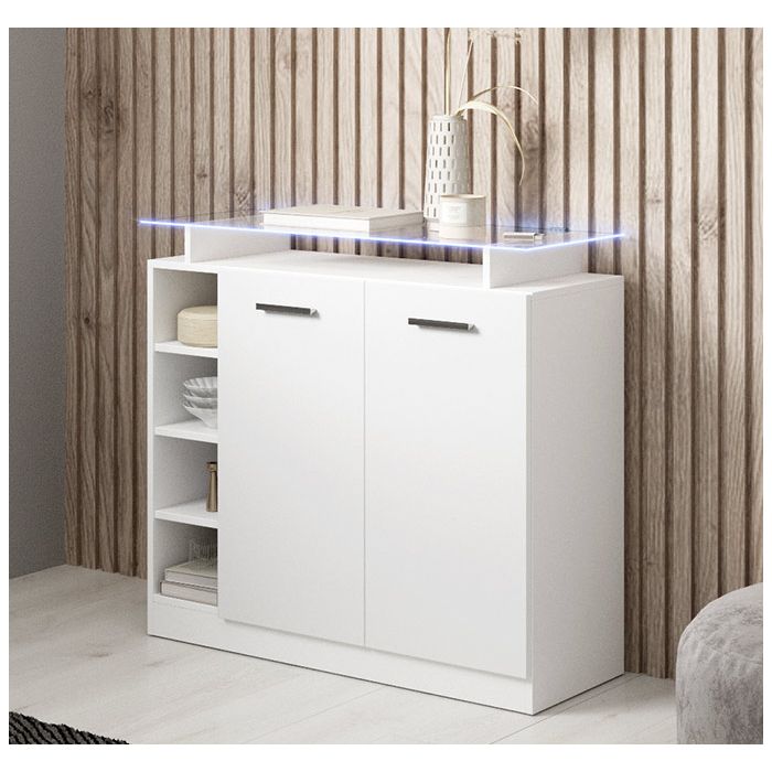 A sua prateleira superior em vidro, juntamente com duas luzes LED, criará o ambiente ideal para receber as tuas visitas.