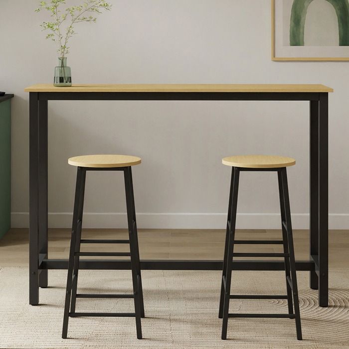 Mesa alta com 2 Bancos altos Preto e Sonoma 140 cm Ani