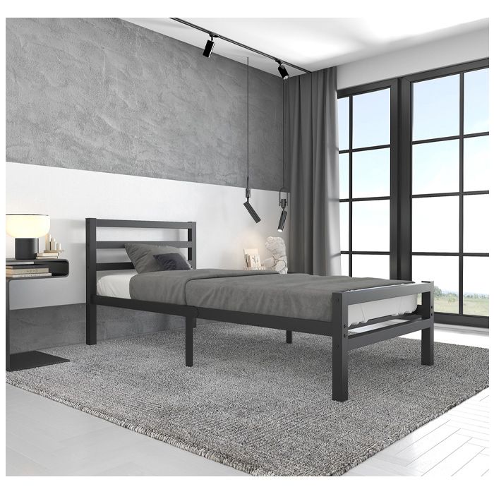 Cama individual metálica Niki em cor preta (90x190 cm)