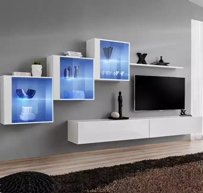 Dependendo dos móveis que escolher no nosso sítio Web, pode criar uma sala de estar acolhedora com iluminação LED, escolher um móvel de sala com lareira como o modelo Erica, ou o minimalismo de uma simples combinação de móveis modulares bem combinados com pouca decoração.