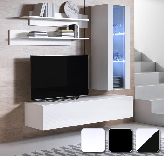 Pode criar o ambiente da sua sala de estar com os móveis de sala de estar da nossa loja como quiser, pois damos-lhe algumas ideias, mas também pode combinar móveis de TV com vitrinas, aparadores ou cómodas, prateleiras e móveis de parede, e aconselhamos que procure pelo nome para se certificar de que todos têm a mesma cor e brilho.