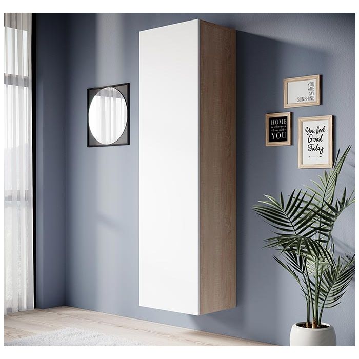 Armário suspenso modelo Eliot (40x165cm) cor sonoma e branca mate