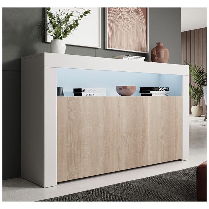 Aparador modelo Aker cor branca e sonoma mate