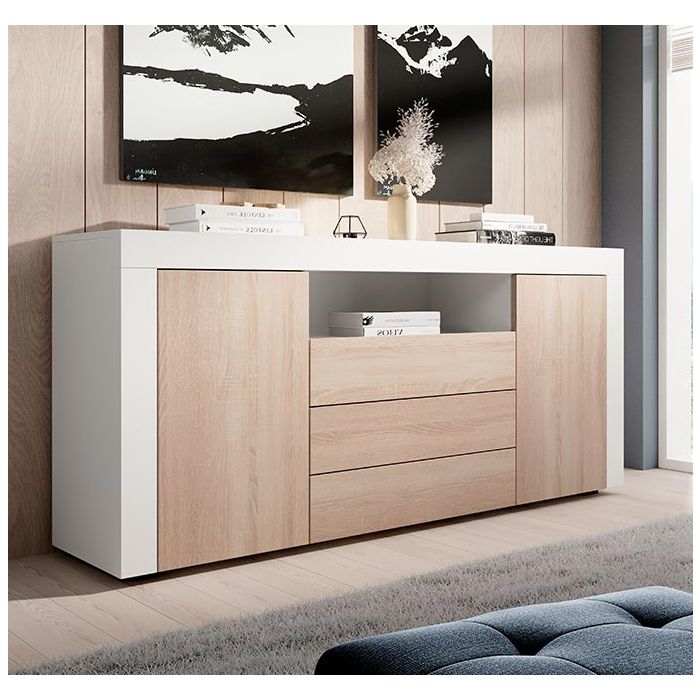 Aparador modelo Yanis cor branca e sonoma