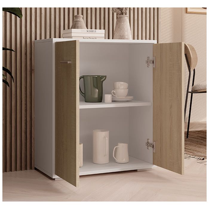 Aparador pequeno Branco e Sonoma 71 cm Lander L2