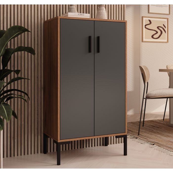 Aparador pequeno cor Nogal Ambar e Cinza 110,5 cm Lander L17