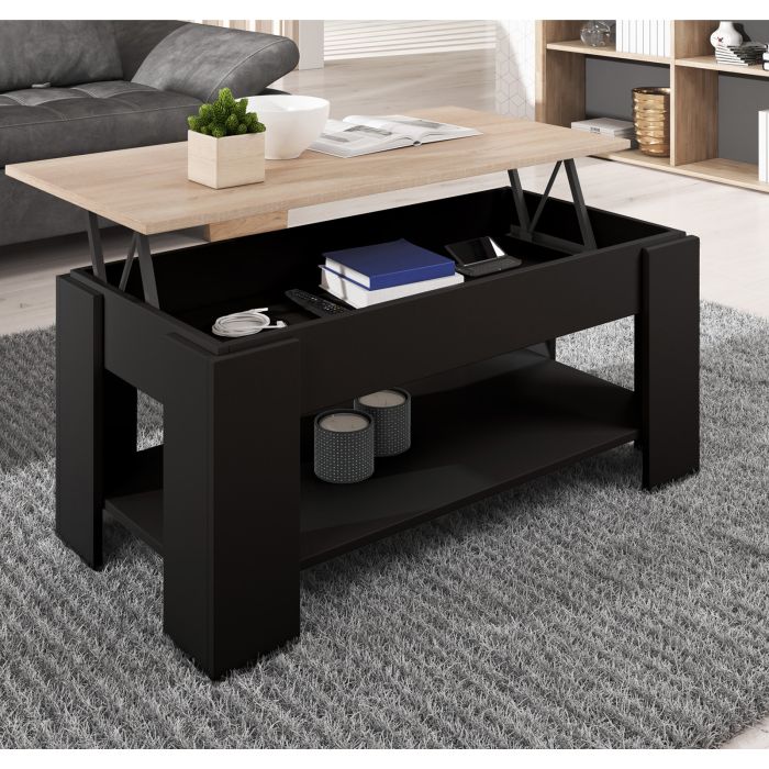 Mesa de centro elevatória Preto e Sonoma 100 cm Nicoleta