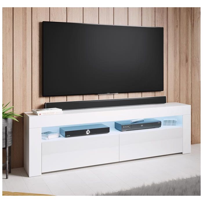 Móvel de TV com 2 portas rebatíveis e 1 compartimento iluminado com luzMateriais do Móvel TV: