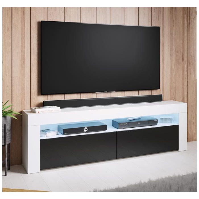 Móvel de TV com 2 portas rebatíveis e 1 compartimento iluminado com luzMateriais do Móvel TV: