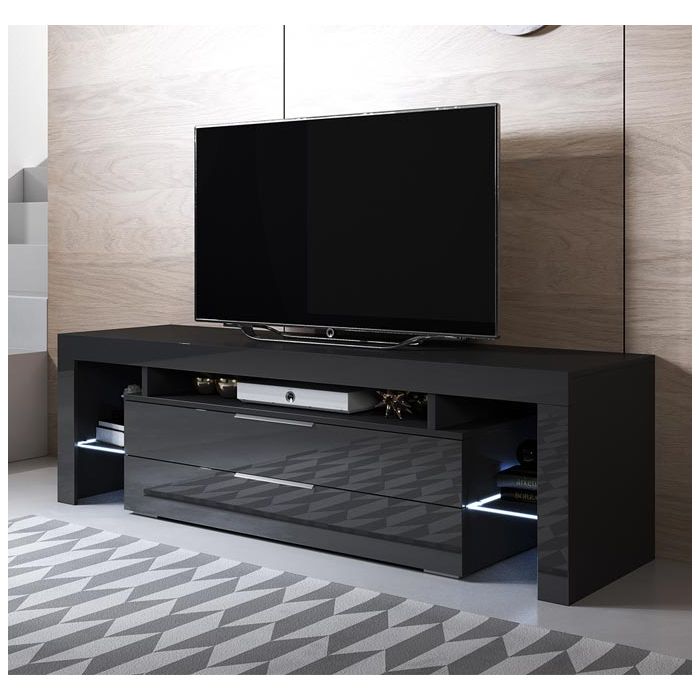 Móvel de TV modelo Selma (160x53cm) cor preta com LED RGB