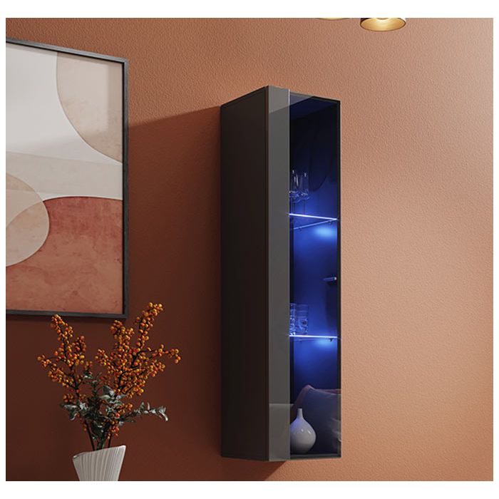 Vitrine suspensa modelo Berit 30x120 cor cinzento com LED
