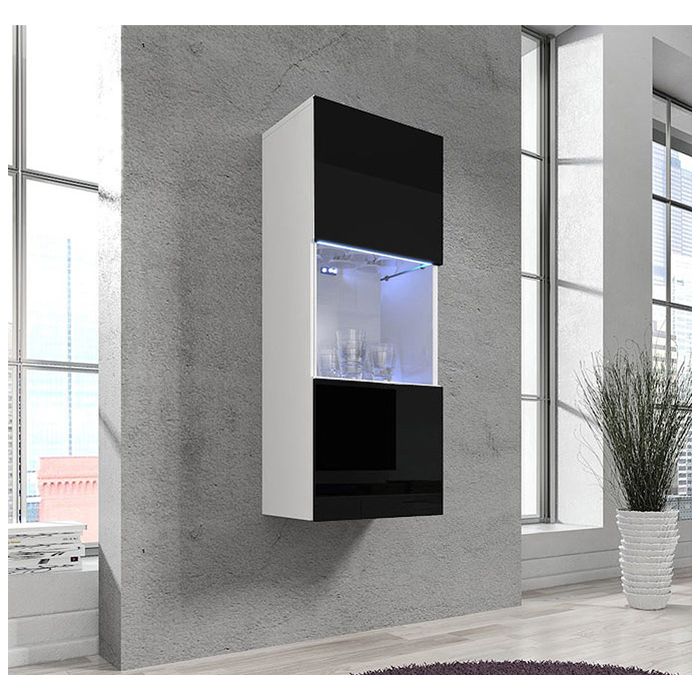 Vitrine suspensa modelo Nora V3 (40x126cm) cor branca e preta