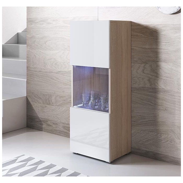 Vitrine modelo Luke V3 (40x128cm) cor sonoma e branca com pés standard