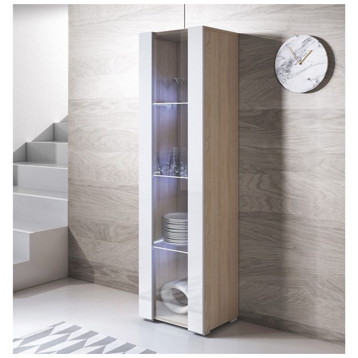 Vitrine modelo Luke V5 (40x167cm) cor sonoma e branca com pés standard